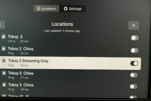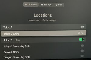 サーバー情報のインストールが完了したら、「Locations」メニューを選択して、使用したいVPNサーバーを選びます。