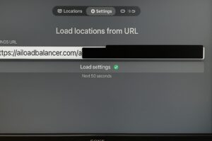 続いて、Apple TV側のFloxcoreアプリを開き、同様に「Settings」を選択したあとで「Load locations from URL」を選びます。