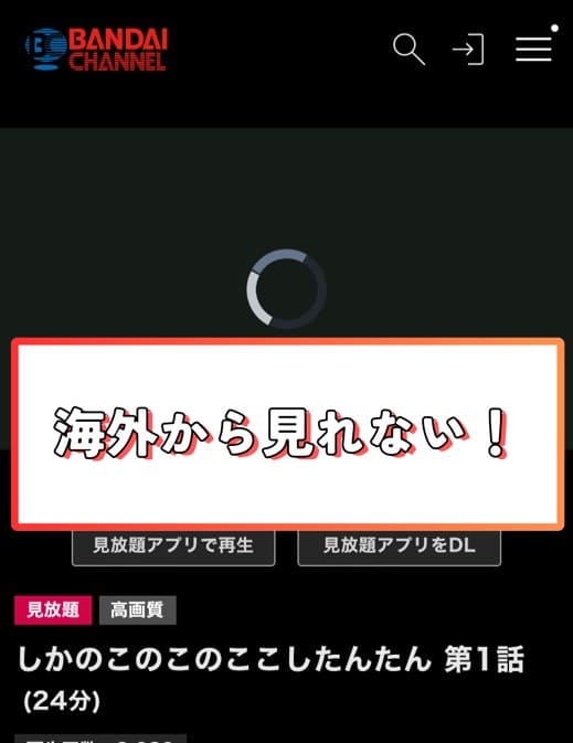 バンダイチャンネルを海外から利用しようとすると、アクセスがブロックされてしまいます。