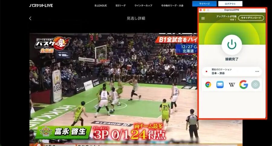 適切なVPNを使用することで、海外滞在中でも日本と同じようにバスケットLIVEを楽しむことができます。