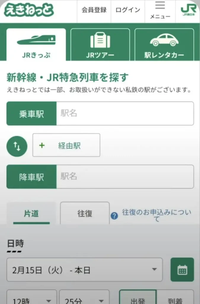 ご自身のユーザーIDとパスワードを入力してログインしてください。ログイン認証が成功すれば、新幹線チケットの予約手続きが可能になります。