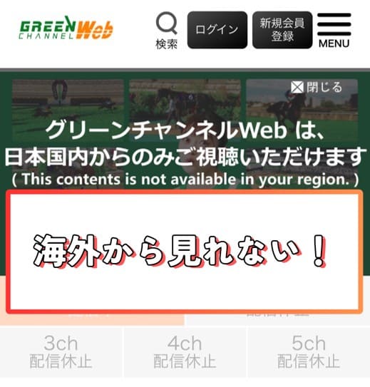 グリーンチャンネルを海外から利用しようとすると、アクセスがブロックされてしまいます。
