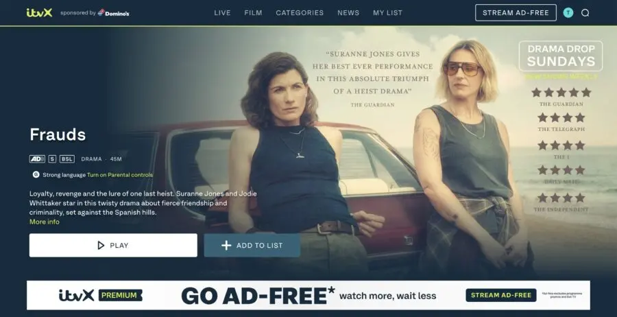もし広告の表示が煩わしく感じる場合には、月額料金制の有料プラン「ITVX Premium」にアップグレードする選択肢も用意されています。