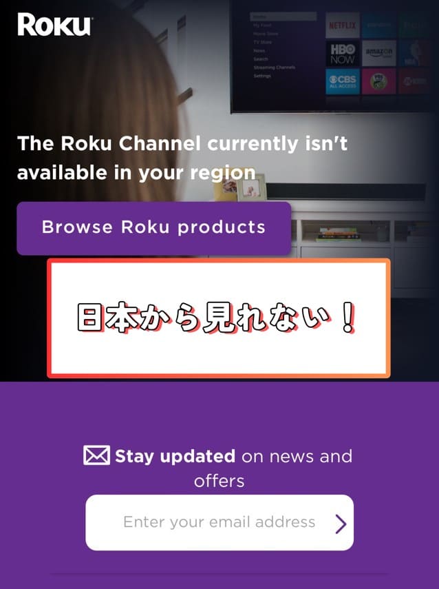 日本からアメリカのRoku Channelにアクセスした場合の画面