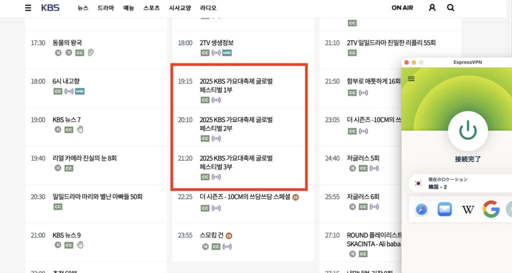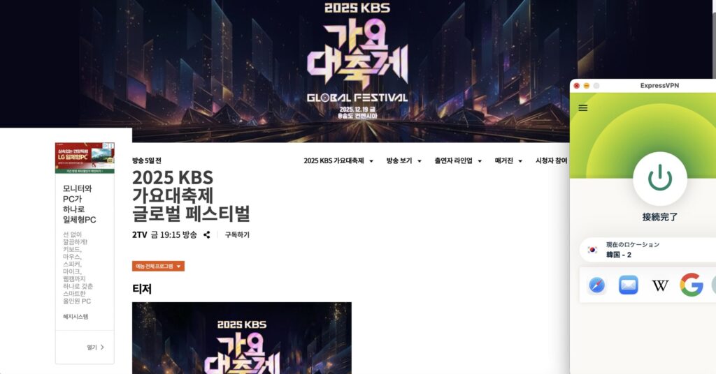VPNを使って、KBS歌謡祭2025の生放送を日本から視聴する手順
