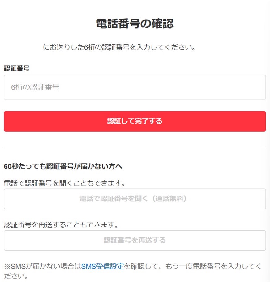 電話番号宛に送られてくる認証番号を入力しましょう。