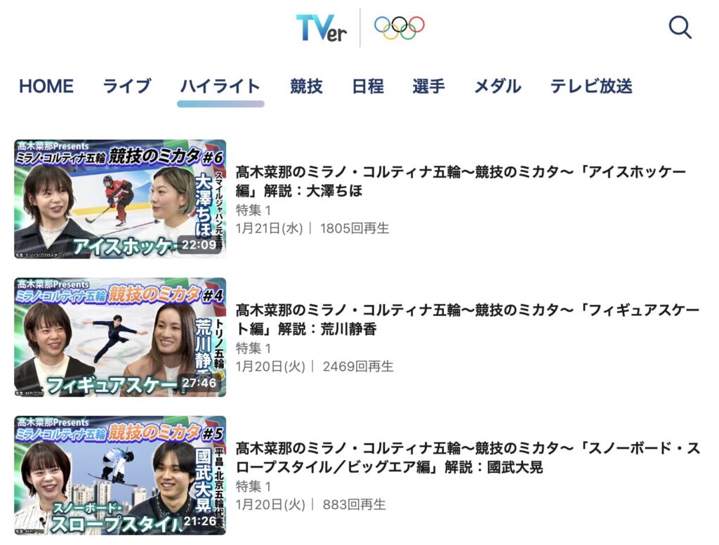 2026年のミラノ・コルティナ2026冬季オリンピックは、例年どおりTVerで配信されます。