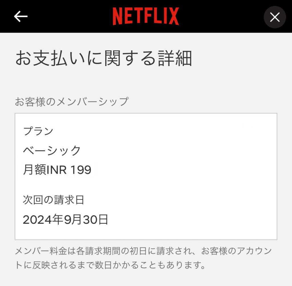 VPNを利用してインド経由でNetflixに加入すると、以下のような料金体系でサービスを利用することができるんです!