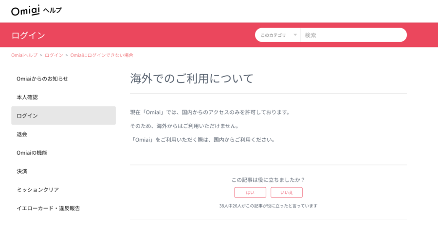 現在「Omiai」では、国内からのアクセスのみを許可しております。