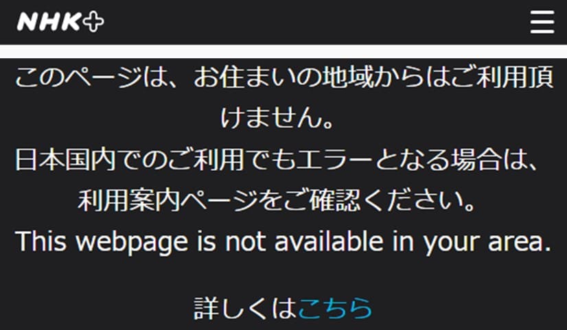 NHKプラスまたはNHKオンデマンドを海外から利用しようとすると、アクセスがブロックされてしまいます。
