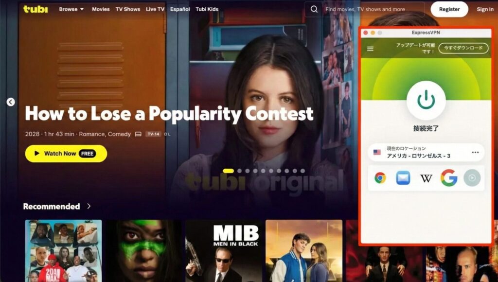 VPN接続を利用すれば、Tubiが保有する5万本を超える映画やドラマを好きなだけ楽しめます。