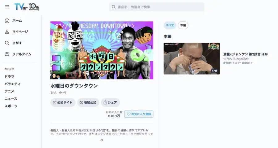 水曜日のダウンタウンについては、放送終了後から約1週間という限定期間での配信となっています。