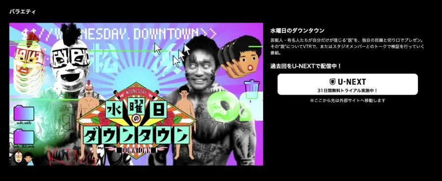 水曜日のダウンタウンの面白い過去エピソードをまとめて視聴したい、あるいは特定の回を何度も見返したいというニーズがあるなら、U-NEXTの31日間無料トライアルを活用するのがおすすめです。