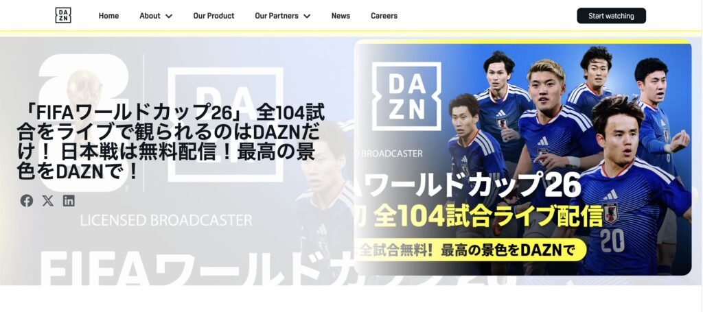 2026年W杯全試合を網羅したいなら、DAZNが唯一の選択肢となります。